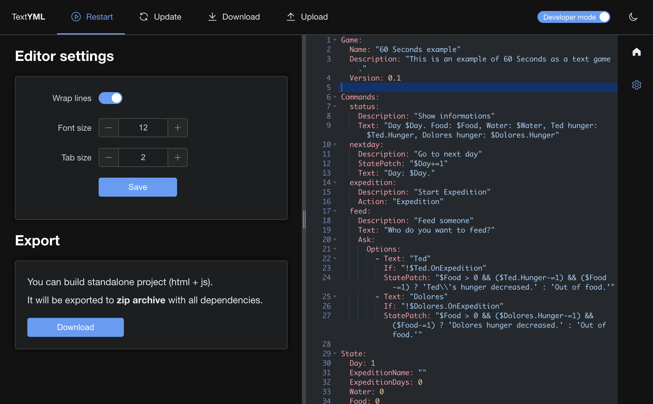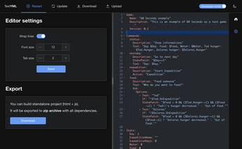 Game code is based on YAML files, which contain all the logic (hence the name TextYML).